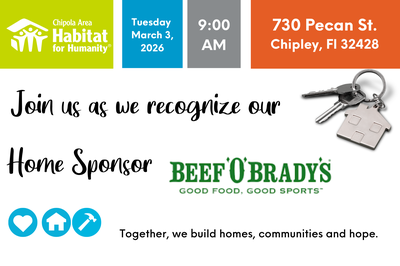 The Chipola Area Habitat for Humanity will host a Home Sponsor Recognition!